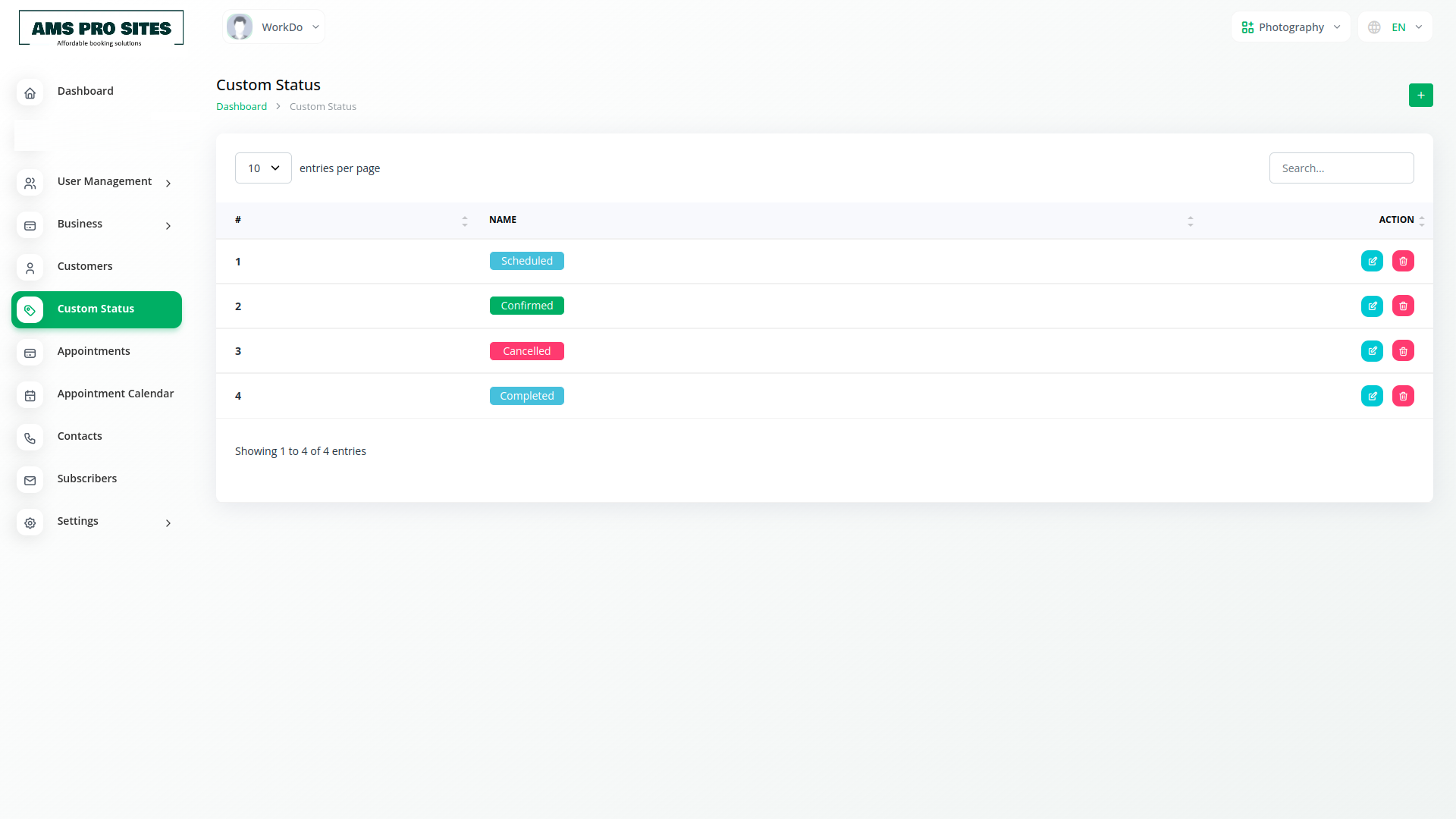 The Custom Status module within AMS Pro Sites SaaS offers administrators the ability to tailor appointment statuses to suit unique business workflows and requirements, providing enhanced clarity and efficiency in appointment management.