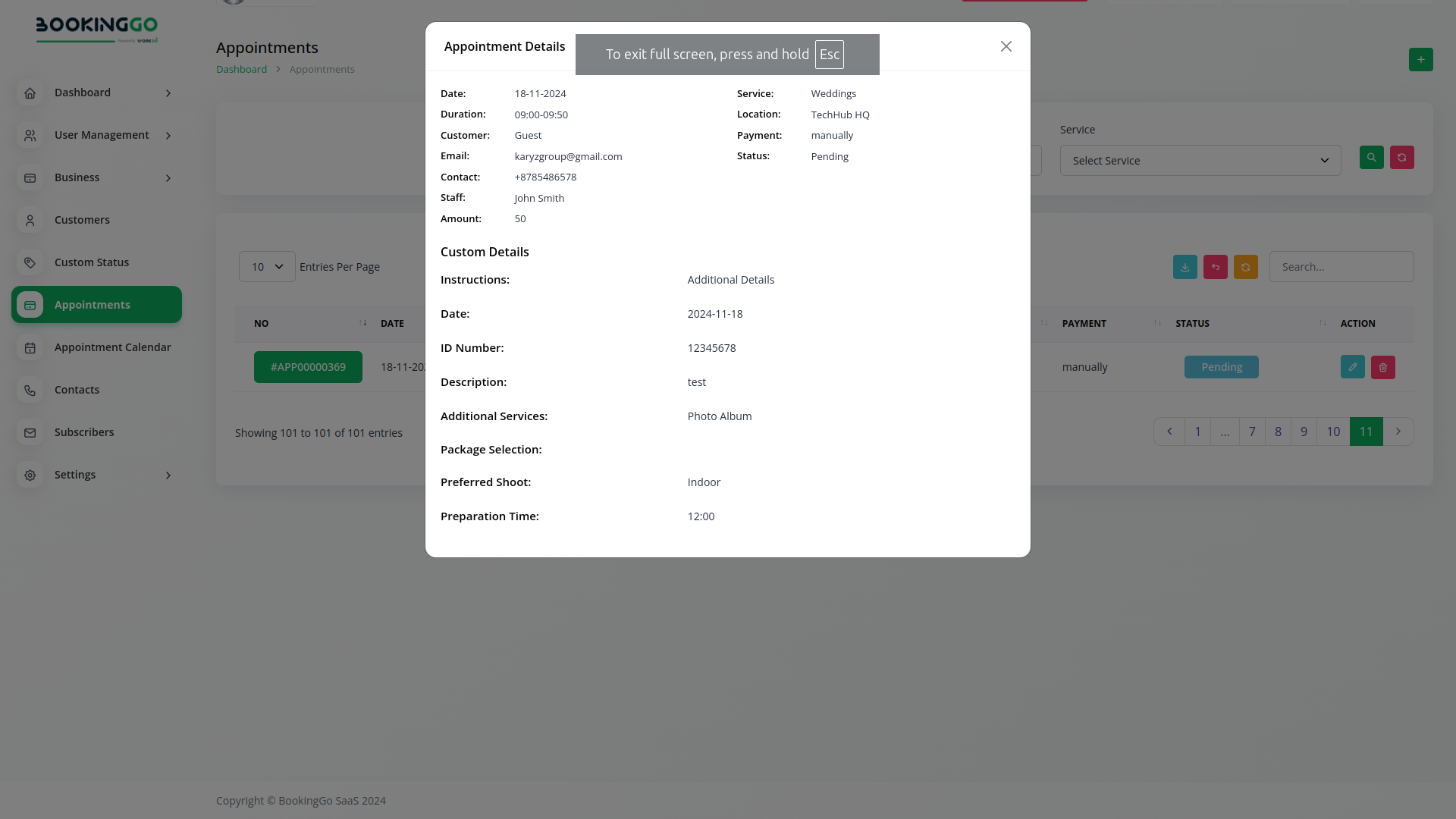 After you have added the custom fields to your forms, these fields will automatically become visible to customers when they proceed to book an appointment. This integration ensures that customers provide all required information during the booking process. The visibility of these fields to customers is seamless and intuitive, meaning that they can easily fill out the necessary details without any confusion. This feature helps in collecting comprehensive information upfront, reducing the need for follow-up communication and ensuring a smoother booking experience.